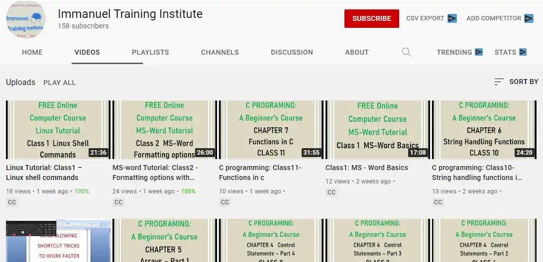 Immanuel Training Institute We do educational videos on School subjects, Aptitude, Maths shortcuts, Learning activity videos, Science activity videos, Computer basics, C, C++, Networking, Shell Scripting, Python, and Interview tips. This channel is our YT 360 giveaway contest winner.