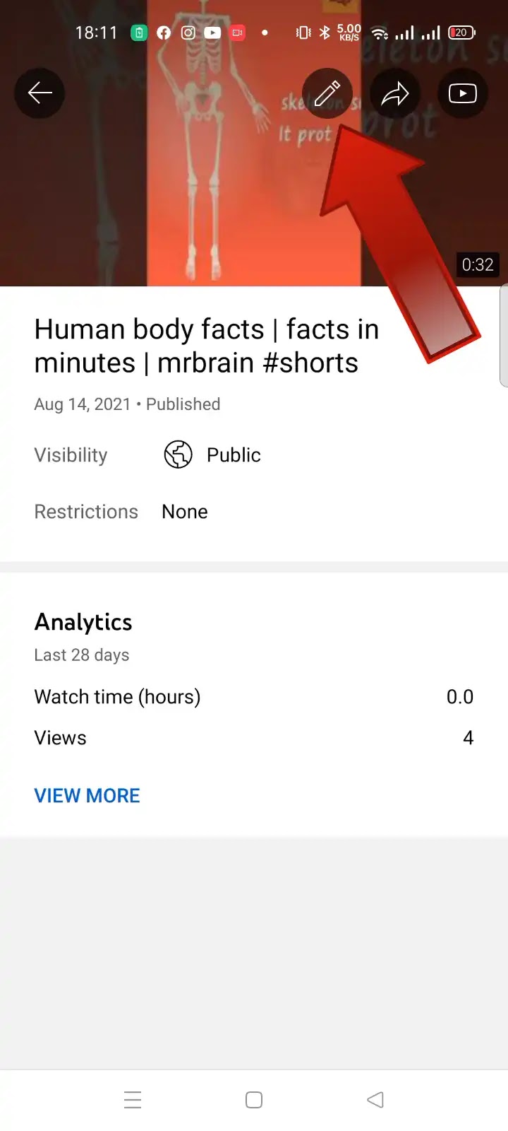 Next, click on the ‘pencil icon’ above the video as shown in the picture above.