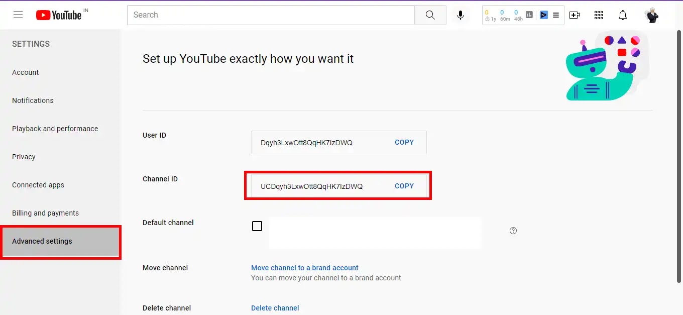 YouTube channel id or user id is an id that identifies a channel. This channel id varies from channel to channel. This channel id is unique among other channels. You can identify your channel with this channel id. Now you can know how to know your channel id.